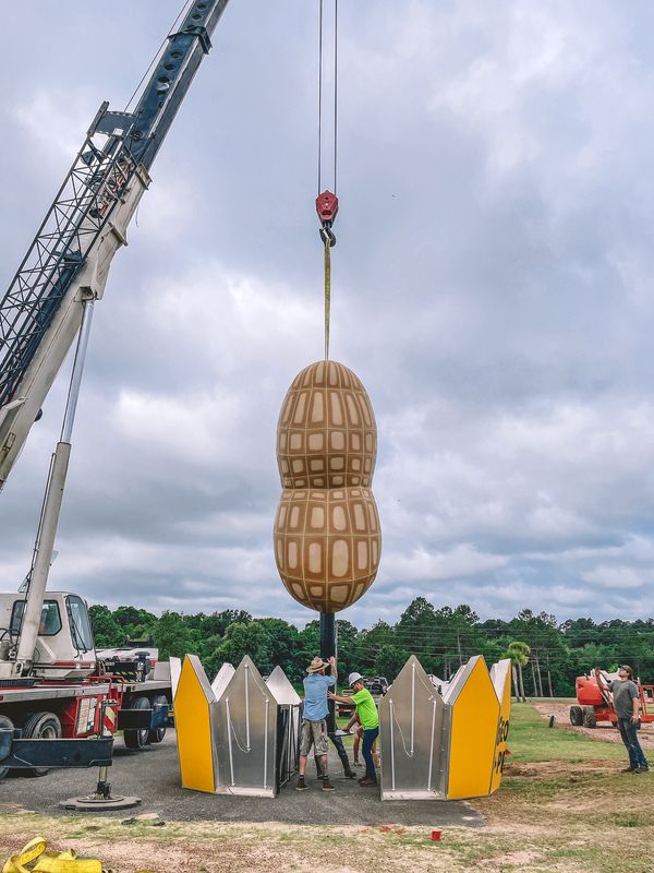 Local craftsmen at Sercer Fabrications in Rebecca worked diligently to build a new and improved version. On June 12, 2023, the Big Peanut was lifted back into place along Interstate 75. Installation day marked a full-circle moment for the community.