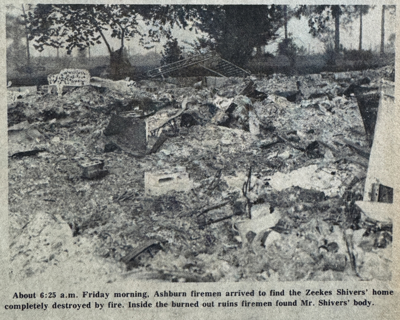 Before the sun rose on the morning of September 20, 1974, a fire consumed a home along Rebecca-Waterloo Road in Turner County. By the time the Turner County Fire Department and Sheriff’s deputies arrived around 6:45 a.m., after receiving a call reporting a house fire, there was almost nothing left to save. In the early morning light, they found the body of J. Zeekes Shivers where his bedroom had been. Shivers was 57 years old.