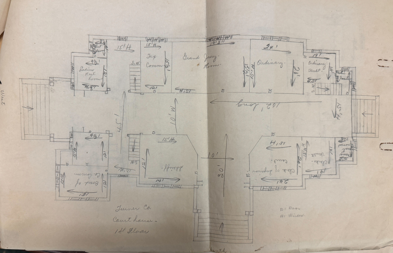 “Turner County Courthouse floor plan,” Turner County Project Digital Archive Repository, accessed October 29, 2025, https://turnercountyproject.com/archive/items/show/1016.
