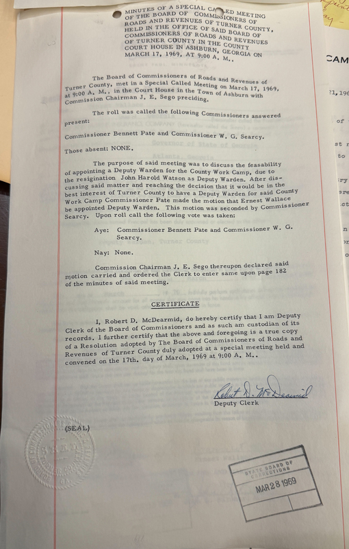 “Ernest Wallace appointed Deputy Warden at TC PWC,” Turner County Project Digital Archive Repository, accessed October 15, 2025, https://turnercountyproject.com/archive/items/show/1049.