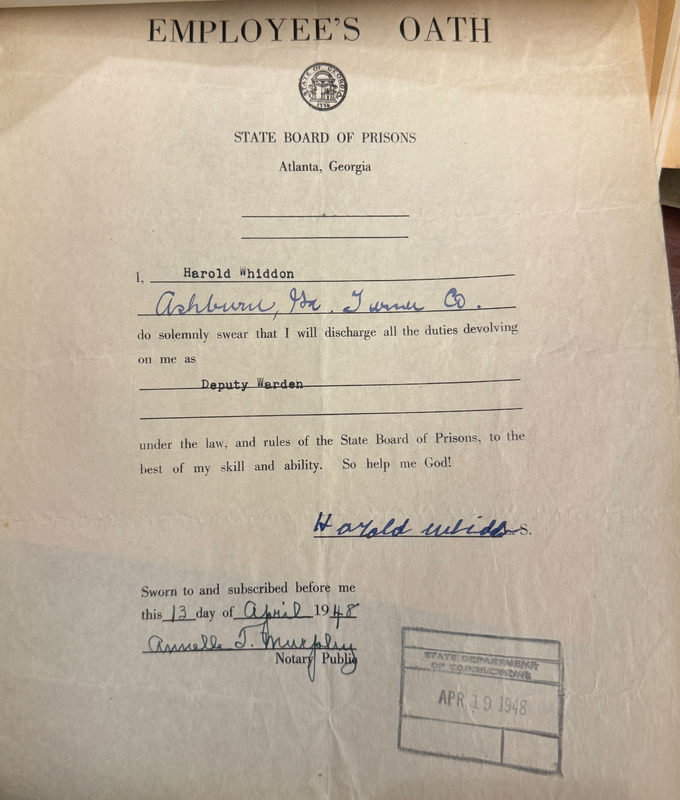 “Harold Whiddon Oath as Deputy Warden,” Turner County Project Digital Archive Repository, accessed November 5, 2025, https://turnercountyproject.com/archive/items/show/1054.