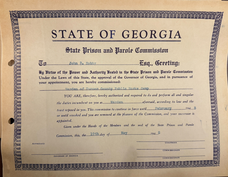 “John B. Hobby - Certificate from State Prison and Parole Commission,” Turner County Project Digital Archive Repository, accessed October 15, 2025, https://turnercountyproject.com/archive/items/show/1074.