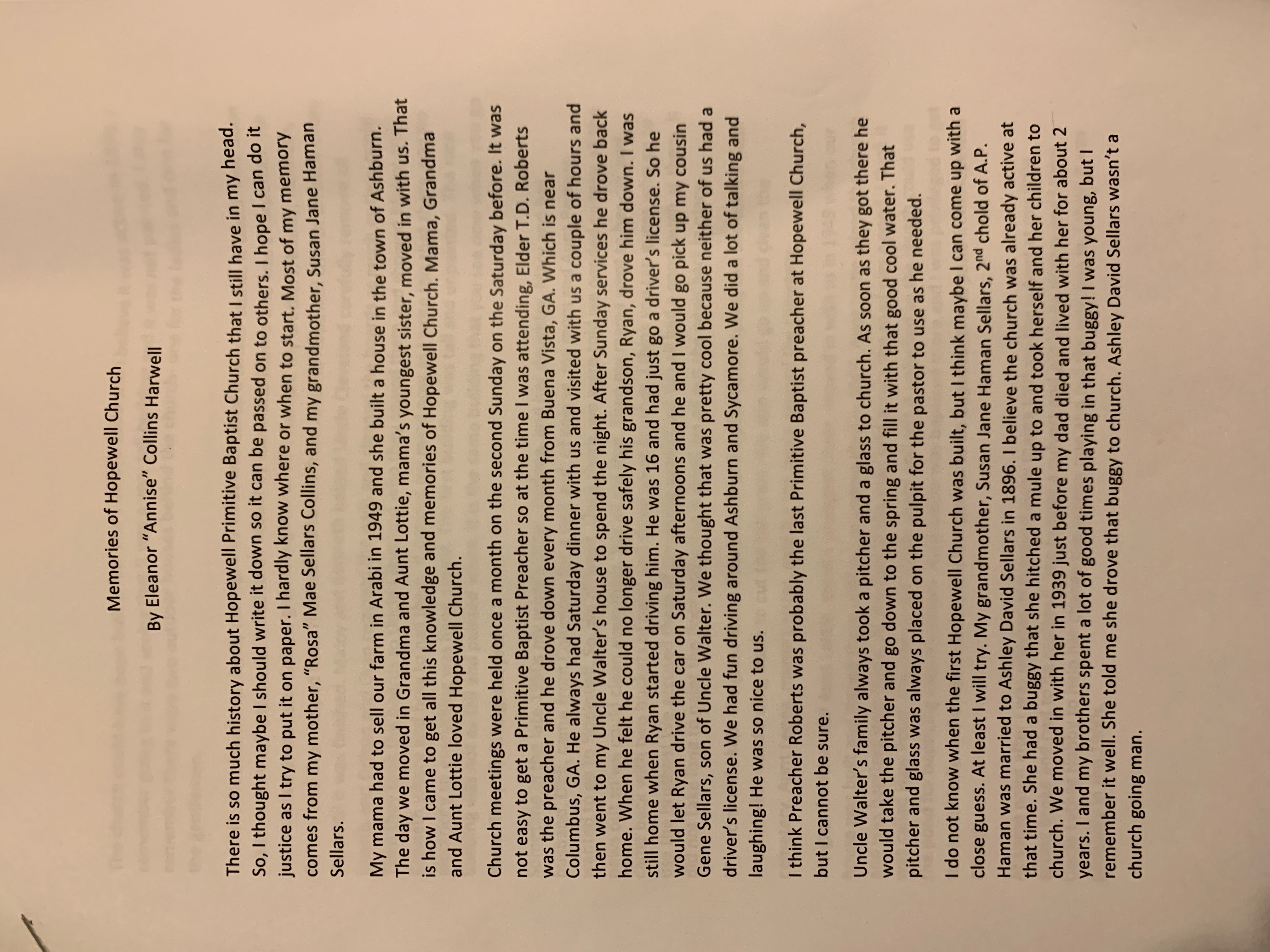 Eleanor "Annise" Collins Harwell, “Hopewell Primitive Baptist Church History,” Turner County Project Digital Archive Repository, accessed October 9, 2025, https://turnercountyproject.com/archive/items/show/1097.