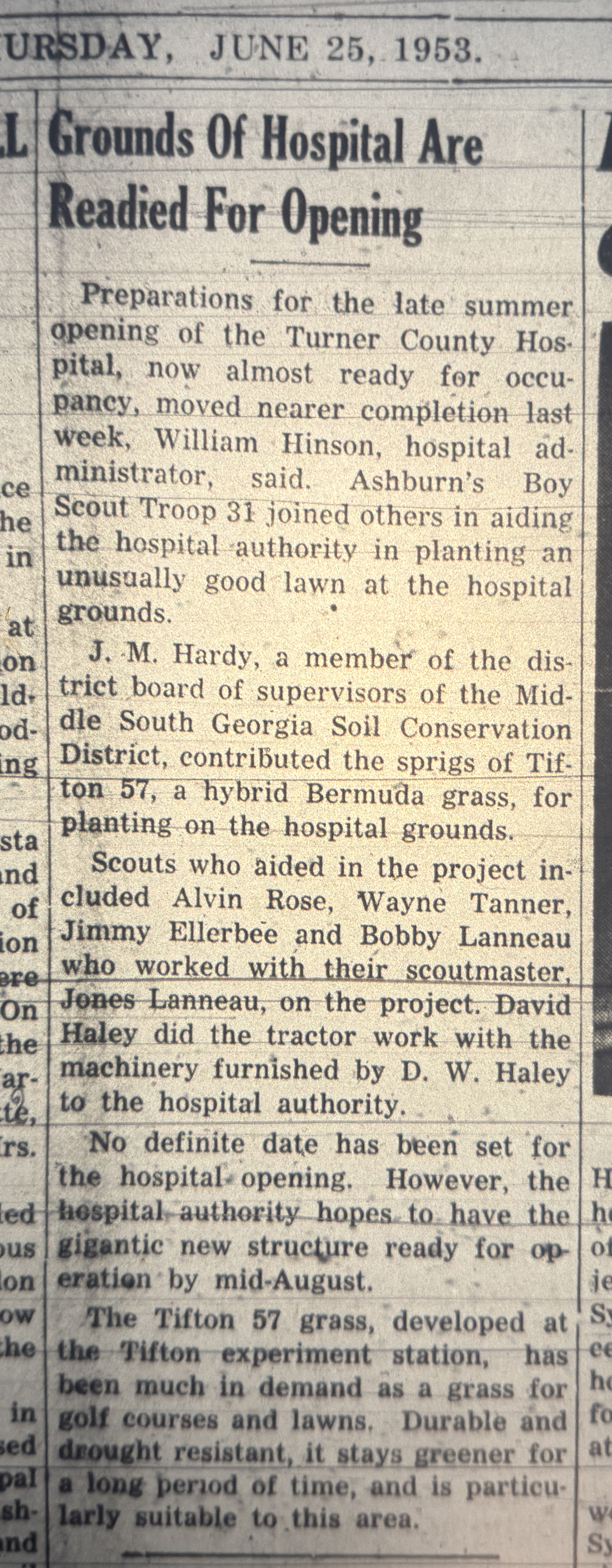 “Grounds Of Hospital Are Readied for Opening,” Turner County Project Digital Archive Repository, accessed October 9, 2025, https://turnercountyproject.com/archive/items/show/1104.