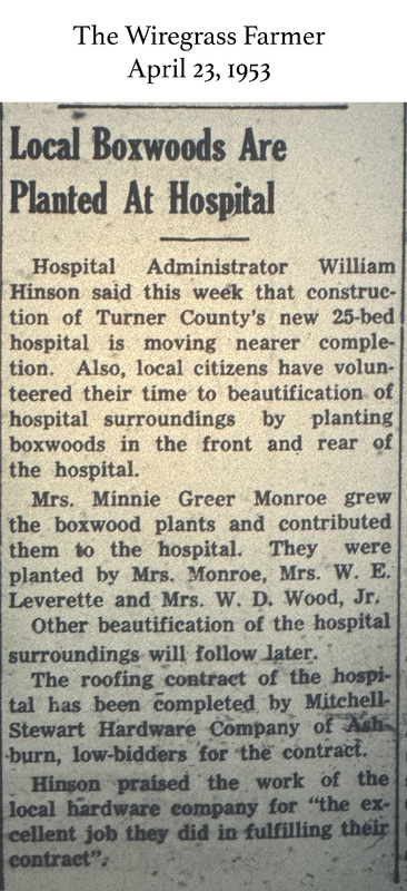“Local Boxwoods Are Planted at Hospital,” Turner County Project Digital Archive Repository, accessed October 30, 2025, https://turnercountyproject.com/archive/items/show/1110.