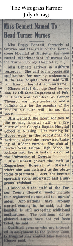 “Miss Bennett Named to head Turner Nurses,” Turner County Project Digital Archive Repository, accessed October 30, 2025, https://turnercountyproject.com/archive/items/show/1112.