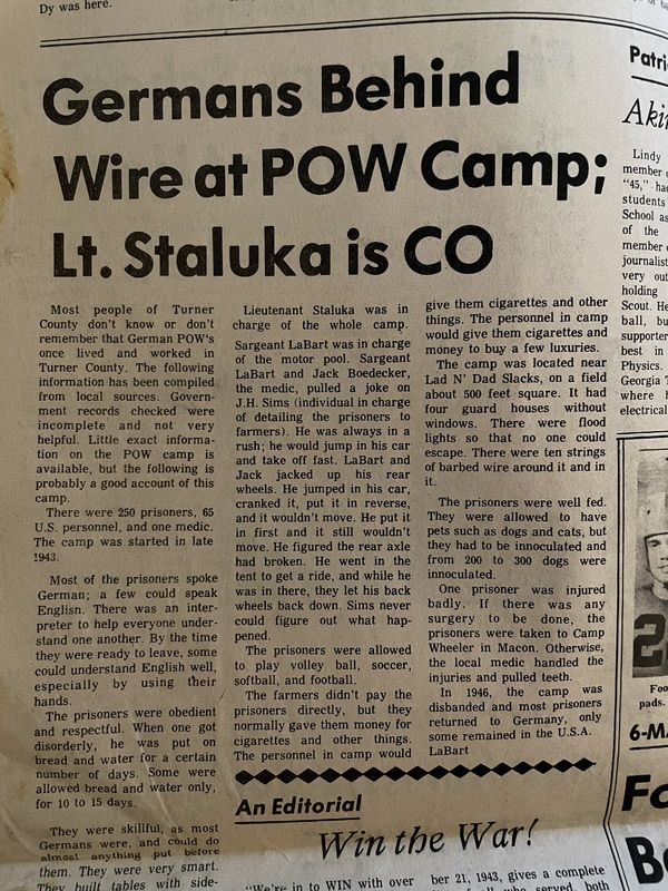 “Germans Behind Wire at POW Camp; Lt. Staluka is CO,” Turner County Project Digital Archive Repository, accessed November 1, 2025, https://turnercountyproject.com/archive/items/show/1126.