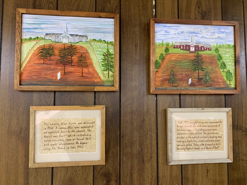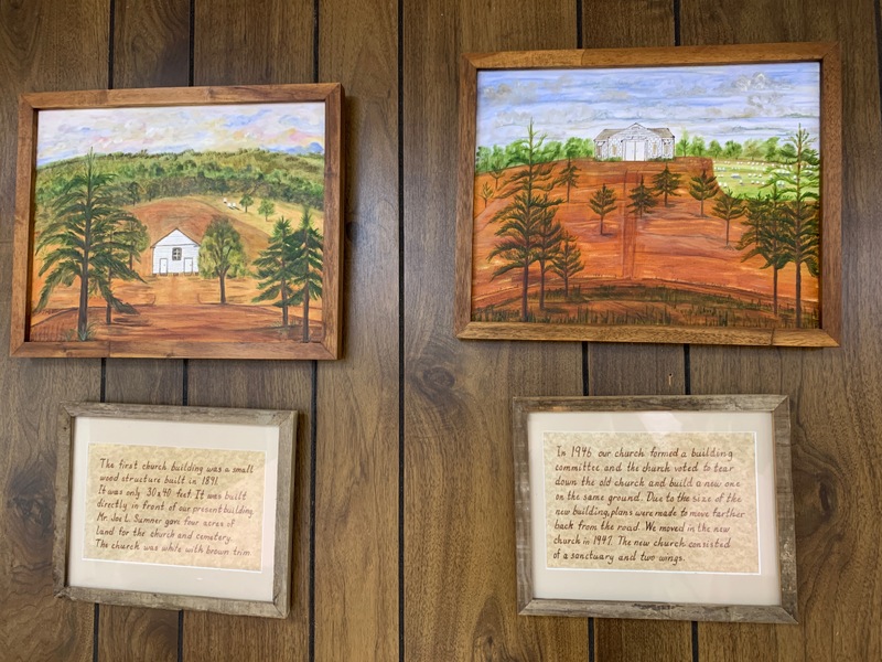 1968-1974: Paved road added, kitchen and library; church was bricked outside; steeple, heating & A/C added; baptistry, carpeting, and new piano