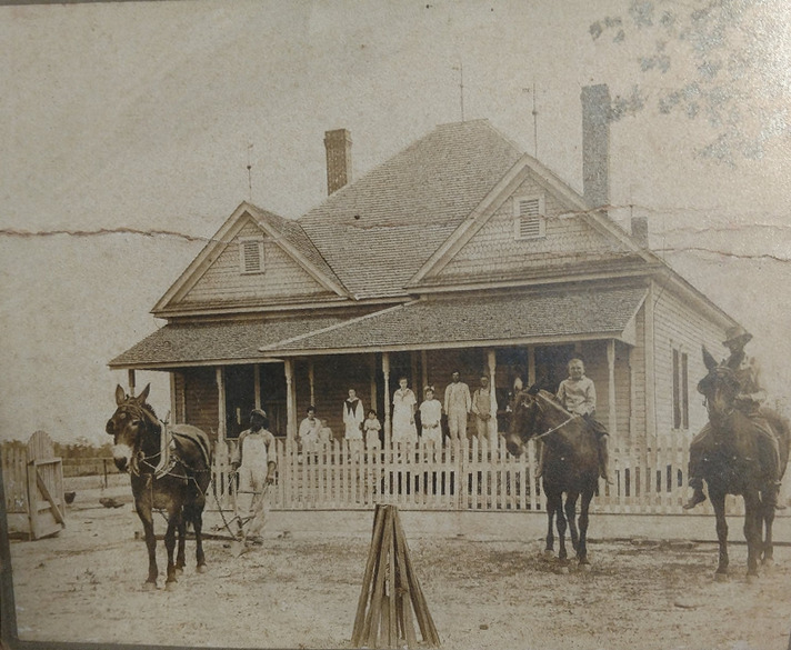 Photo provided by John McRae. John's mother, Mary Opal Phelps McRae, is in the image, sitting in her mother's (Clyde Felts Phelps) lap on the porch. She was 2 years old.