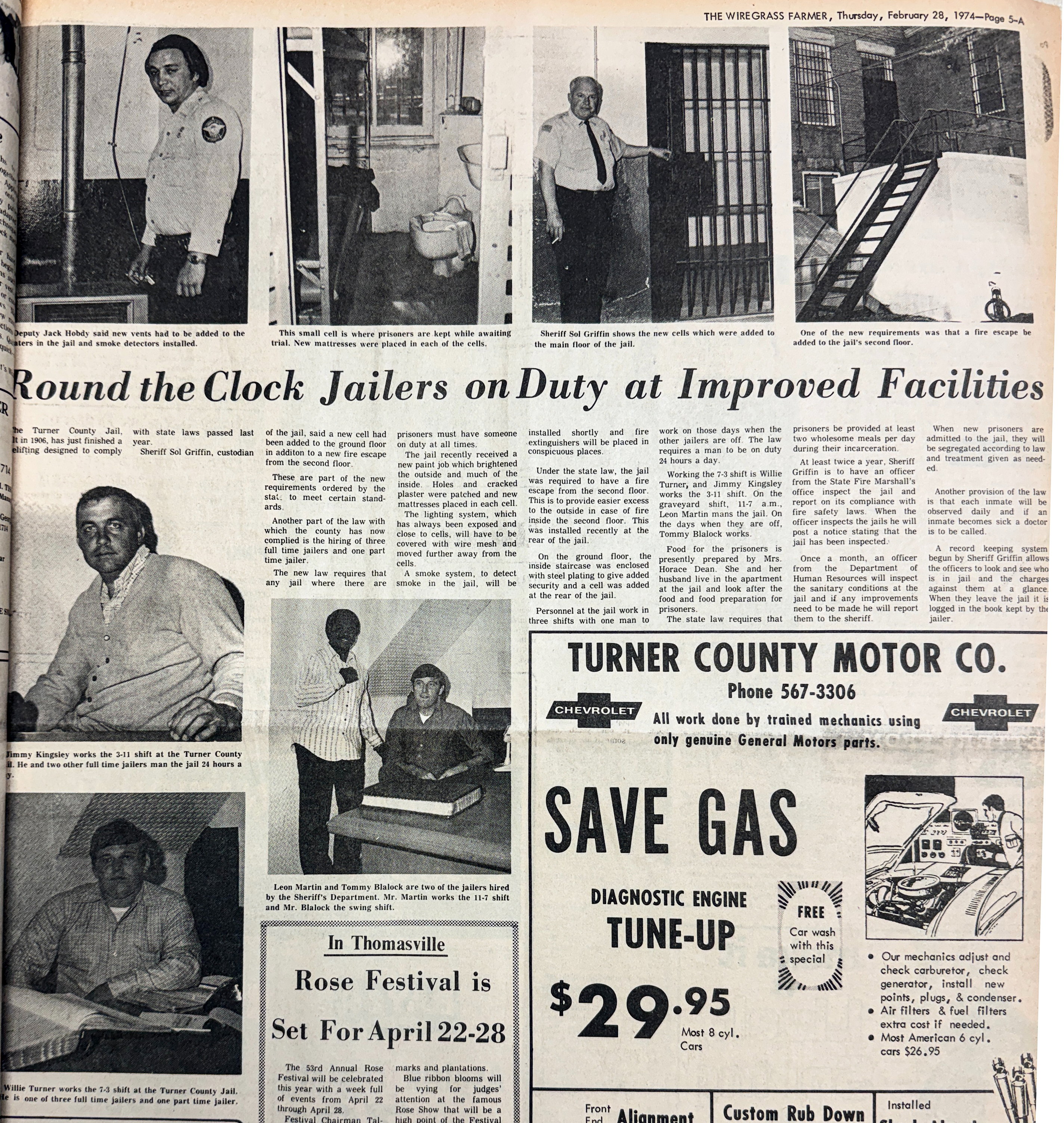 “Round the Clock Jailers on Duty at Improved Facilities,” Turner County Project Digital Archive Repository, accessed March 10, 2026, https://turnercountyproject.com/archive/items/show/1222.