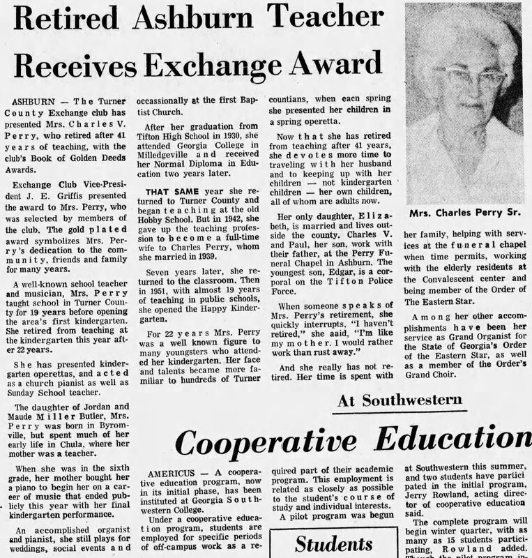 “Retired Ashburn Teacher Receives Exchange Award,” Turner County Project Digital Archive Repository, accessed March 15, 2026, https://turnercountyproject.com/archive/items/show/1237.