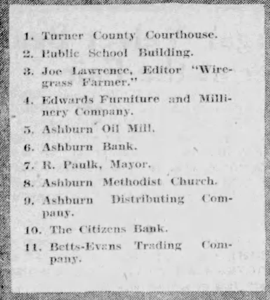 “Ashburn is Located in the Heart of one of Georgia's Richest Farming Sections,” Turner County Project Digital Archive Repository, accessed March 25, 2026, https://turnercountyproject.com/archive/items/show/751.