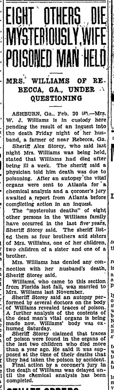 "The 'mysterious deaths' of eight other persons in the Williams family have occurred in the last five years..."