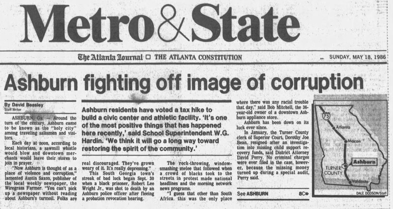 “Ashburn fighting off image of corruption,” Turner County Project Digital Archive Repository, accessed February 21, 2026, https://turnercountyproject.com/archive/items/show/905.