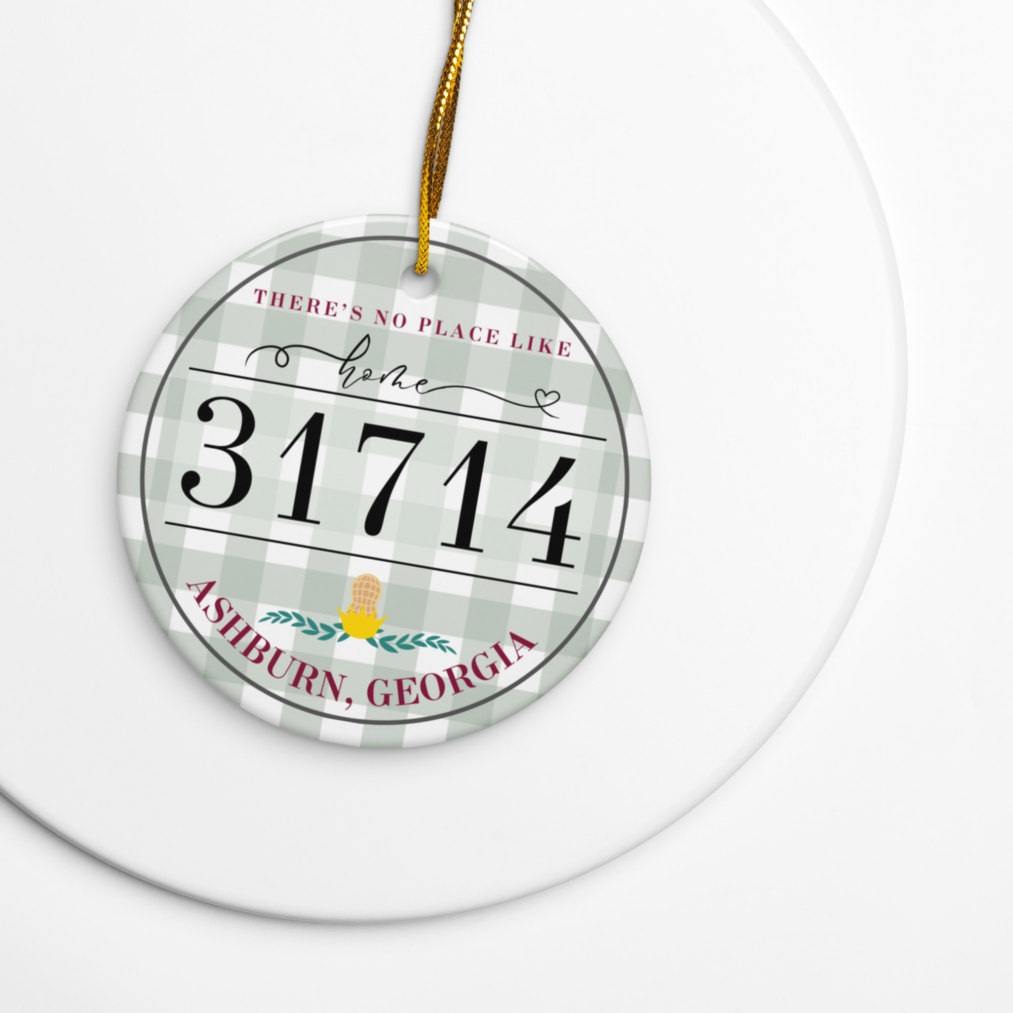 Bring charm to your home with a glossy ceramic ornament available in a circular shape. With a smooth finish and elegant gold-toned string, it stands out in any festive setting.